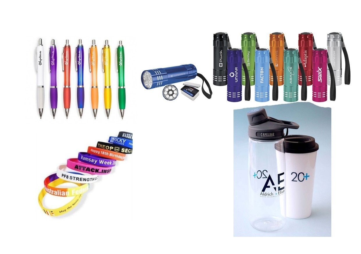 Mugs, pens, journals, coasters, power banks, flash drives, speakers, and more.