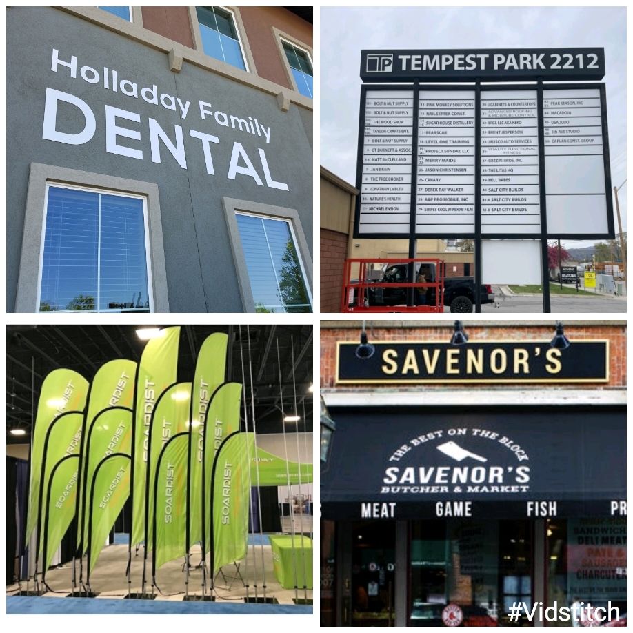 Banners, vehicle wraps, yard signs, A-frames, pop-up event displays, aluminum signs, lobby signs, and canvas wraps.